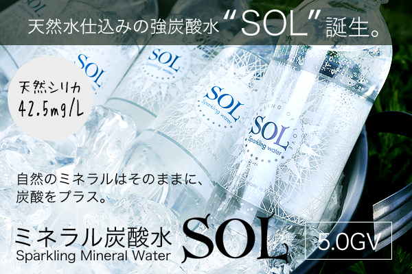 SOL(ソル)は、天然水仕込みのミネラル炭酸水です。自然のミネラルはそのままに、炭酸をプラスしました。