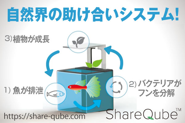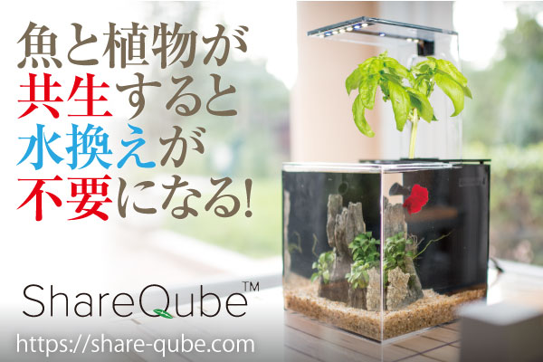 「自然界の循環生態系」を利用した水替え不要なメンテナンスフリー水槽【シェアキューブ】