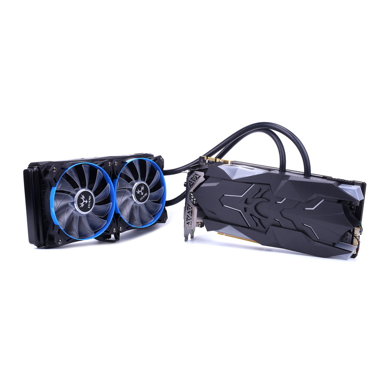 Colorful iGame GTX1080Ti Neptune Wは、NVIDIA PascalTM アーキテクチャを基盤にしたNVIDIA GeForce(R) GTX 1080 Ti搭載、ベースクロック1,480Mhz、ブーストクロック1,582Mhz、メモリクロック11GHz、メモリ容量11GBのウルトラハイエンド仕様のグラフィックスカードです。240mmラジエータの簡易水冷ユニットを採用しています。独自のオーバークロック機能「ONE-KEY OC」、低インピーダンスと発熱を抑える「S.P.T」、高品質電源回路「I.P.P」を搭載、GPUの性能を極限まで引き出し、妥協のないゲーミング環境を実現します。