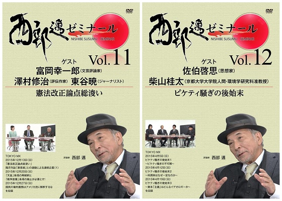 ゴマブックス株式会社(所在地:東京都港区、代表取締役社長:赤井仁)は、2017年8月25日(金)より、Amazon DOD(ディスク・オン・デマンド)ストアにて、DVD『西部邁ゼミナール』「vol.11【ゲスト:富岡幸一郎、澤村修治、東谷暁】憲法改正論点総浚い」「vol.12【ゲスト:佐伯啓思、柴山桂太】ピケティ騒ぎの後始末」の販売を開始いたしました。