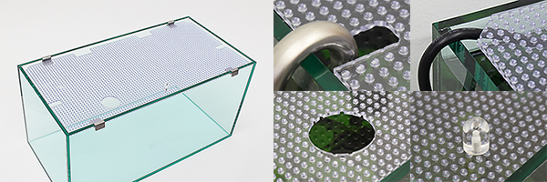 ポリカーボネートと塩ビパンチングは、反り辛く割れ難い、水槽のフタとしてバランスの取れた安心・安全な素材