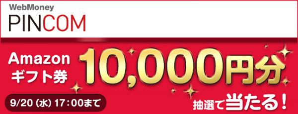 株式会社ウェブマネー(本社:東京都港区、代表取締役社長:森田 康裕)は、ギフトコード専用のオンラインショッピングモール「WebMoney PINCOM」内の「Amazonギフト券 & Kindle Amazonギフト券ショップ」にて、初めて「Amazonギフト券」10,000円分を購入された方(※)の中から抽選で最大300名様に10,000円分の「Amazonギフト券」が当たるキャンペーンを2017年9月1日(金)より実施します。