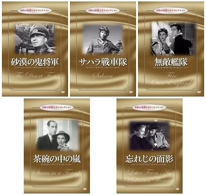ゴマブックス株式会社(所在地:東京都港区、代表取締役社長:赤井仁)は、2017年9月1日(金)より、Amazon DOD(ディスク・オン・デマンド)ストアにて、DVD「不朽の名作シネマコレクション」シリーズ5作品『砂漠の鬼将軍』『サハラ戦車隊』『無敵艦隊』『茶碗の中の嵐』『忘れじの面影』の販売を開始いたしました。