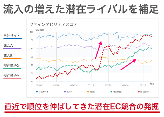 ライバル設定していなかった潜在競合」までいち早く察知し、対策できる。