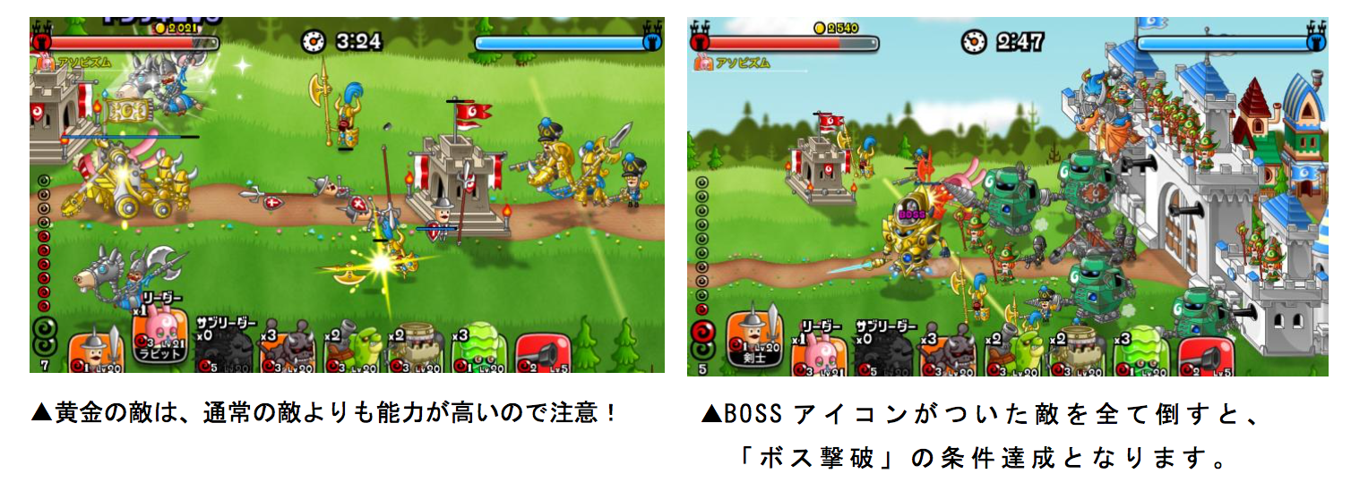 「みんなで」バトル内の「討伐イベント」から、「草原の黄金騎士団」に挑戦できます。本イベントは、敵の城を落城させないとステージクリアとならない特別ルールとなっています。「みんなで」1日3回まで、ルビーの消費なしで討伐に挑戦できます。 ※討伐に挑戦できる回数は毎日4:00にリセットされます。