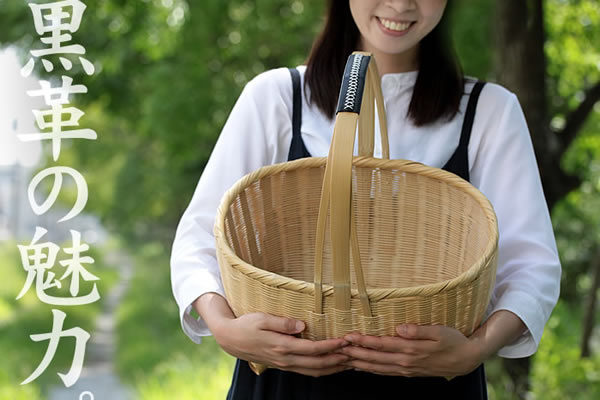 淡竹黒革持ち手買い物籠
