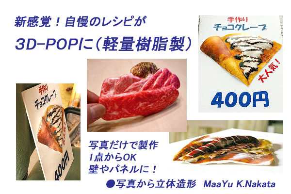 食品写真から直接立体サンプルを製作する技術です。