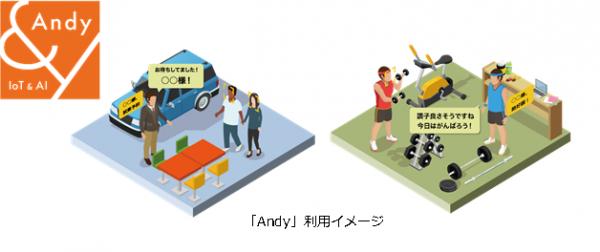 「Andy」は、IoTとAIで企業とお客様をつなぐ、新しいカタチのサービスです。顔写真を撮影するだけで簡単に顧客登録でき、カメラとAIで顧客を自動認識します。認識した顧客データは、各種端末へ通知したり、お客様のスケジュール管理と連携した音声誘導を実現します。