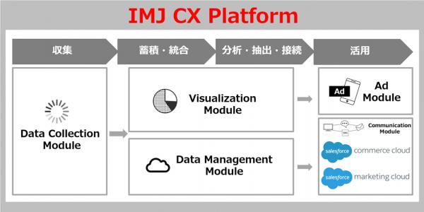 また、Customer Experience(CX)を実現するためのプラットフォーム「IMJ CX Platform」*により、各種マーケティングソリューションを適切に組み合わせたプラットフォーム構築のノウハウを有しています。