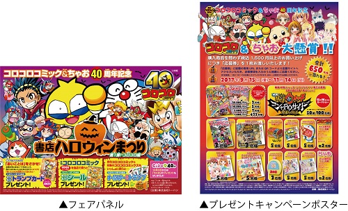 今回のキャンペーンでは、世代を超えて読まれ、現在も小学生に絶大な人気の「コロコロ」「ちゃお」の創刊40周年を記念し、書店店頭と連動したフェアを実施します。