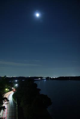 静謐な多摩湖にのぼる名月。武蔵野の月。隣接する「掬水亭」では名月メニューを展開。