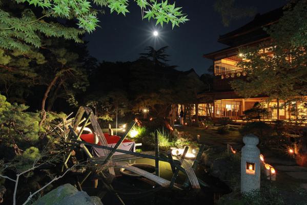 旧齋藤家別邸庭園から望む月(新潟県新潟市)