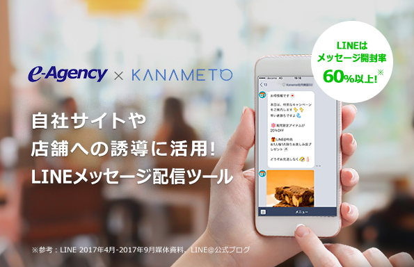 “おもてなしを科学する”株式会社イー・エージェンシー(東京都千代田区、代表取締役:甲斐真樹、以下イー・エージェンシー)は、2017年 9月19日、LINE@と連係して、これまでLINE@ではできなかったセグメント配信を可能にするLINE@対応メッセージ配信ツール「KANAMETO(カナメト)」について、公式リセラーとして販売・サポートを開始しました。