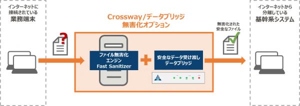 NTTテクノクロス株式会社(本社:東京都港区港南、代表取締役社長:串間和彦)のデータ受け渡し製品「Crossway/データブリッジ」に株式会社プロット(本社:大阪市北区、代表取締役社長:津島裕)のファイル無害化エンジン「Fast Sanitizer」を組み合わせた新製品「Crossway/データブリッジ 無害化オプション」を11月1日から販売します。