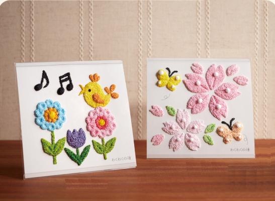 今回取り扱いを開始するのは、粒状の発泡スチロールを粘土状にしたボールクレイを使うぬり絵や、ちりめん生地でお正月飾りを作るキットなど、完成度が高い手芸用品全5種類。いずれも指先を使う作業なので脳に刺激を与え、好奇心や達成感を育むことができます。また、手作りを通じて人とのコミュニケーションを図るのにも最適です。