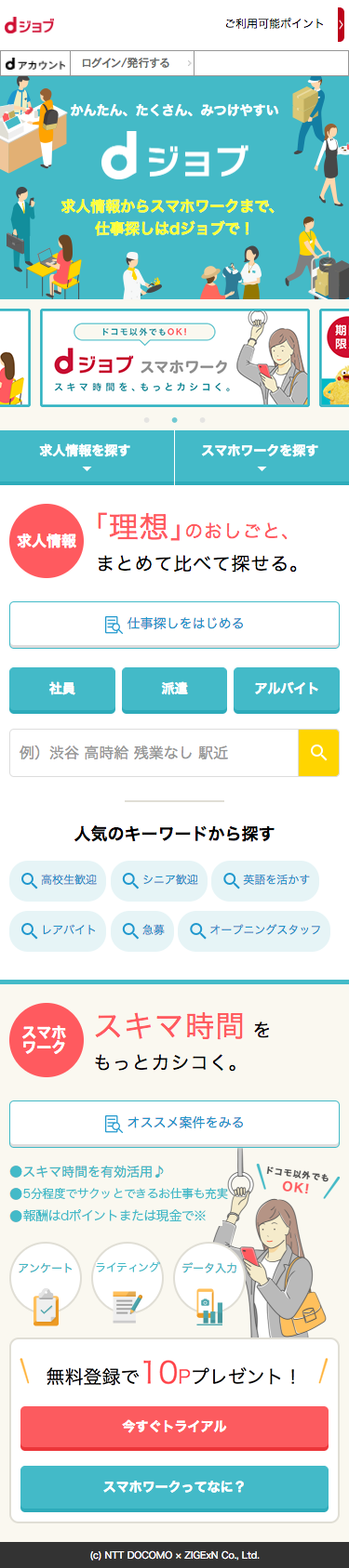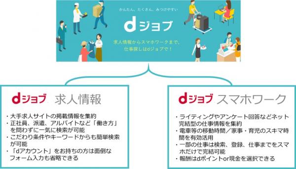 ※「dジョブ」「スマホワーク」「dマーケット」は、株式会社NTTドコモの商標または登録商標です。