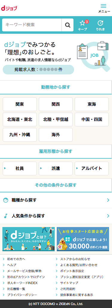 複数の大手求人情報サイトの案件を多数掲載。複数の求人サイトに登録しなくても、正社員・派遣・アルバイトと「働き方」問わずdジョブだけで一気に検索・問い合わせ・応募が可能です。