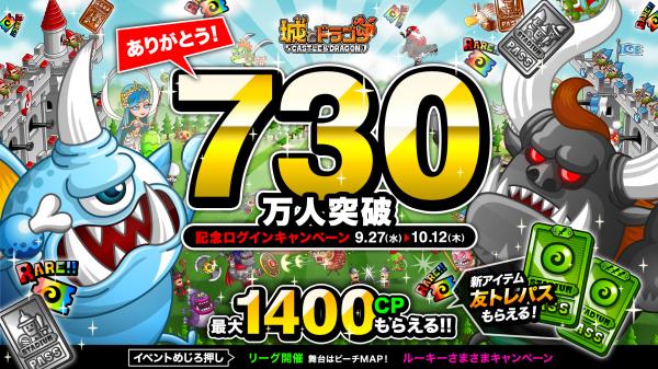 9月27日(水)より、『城とドラゴン』の登録ユーザー数が730万人を突破したことを記念して、