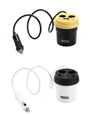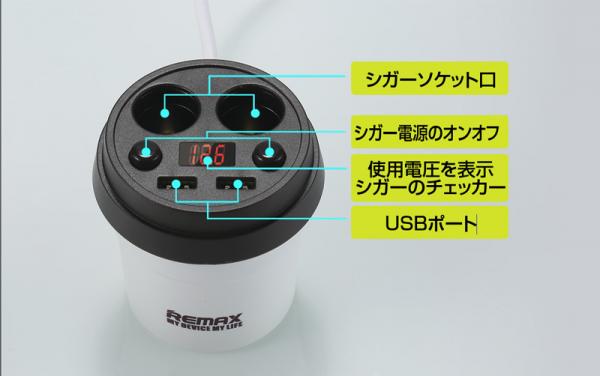 コーヒータンブラーのようなデザインを採用し、車のドリンクホルダーに設置できるシガー分配&シガーUSBチャージャーです。