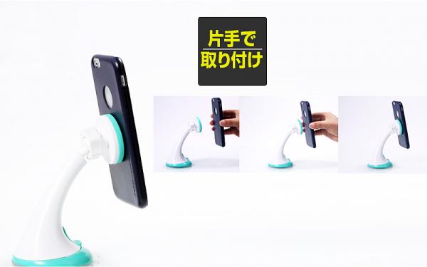 強力な粘着力のジェル吸盤式でダッシュボード取り付けできます。