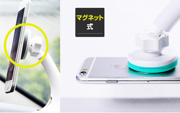 スマホを左右から挟むホルダータイプなので充電ケーブルを接続可能。背面カメラも使えるのでドライブレコーダーとして使えたり、充電しながらカーナビにも使えます。