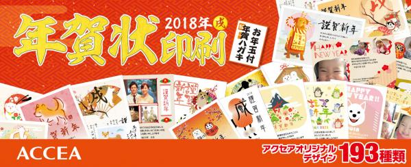アクセアの『2018年度 年賀状印刷(http://www.accea.co.jp/nenga/)』は、インターネット・FAX・国内38店舗の店頭にてご注文が可能です。受付期間は2017年10月2日から2018年1月5日まで。