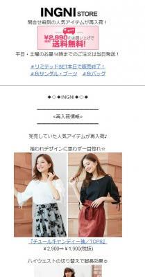 ファッションブランド「INGNI」「allamanda」「INGNI First」のECサイト「INGNI STORE」の運営を行うイングファシリティーズ様は、2014年より当社メール配信システム「WEBCAS e-mail」を活用し、各種メルマガ施策を実施しています。