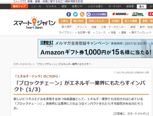 「ブロックチェーン」がエネルギー業界にもたらすインパクトについてスマートジャパンにて寄稿いたしました http://www.itmedia.co.jp/smartjapan/articles/1710/03/news003.html 10月3日