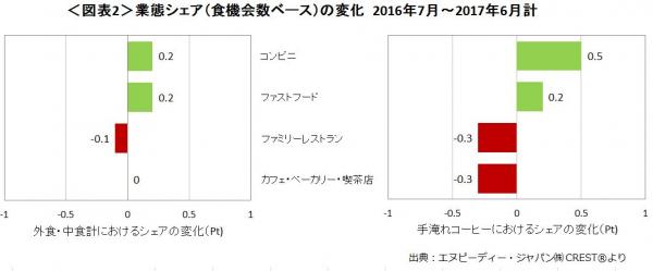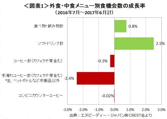 外食・中食市場情報サービス『CREST(R)*1』を提供するエヌピーディー・ジャパン株式会社(東京都港区、トーマス・リンチ代表)は、外食・中食市場における2016年7月~2017年6月計のコーヒーに関する分析レポートを2017年10月10日に公表します。