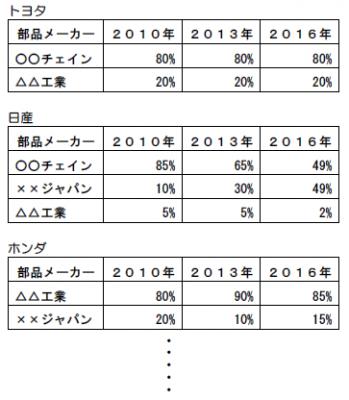 3.各自動車メーカーへの納入比率変化