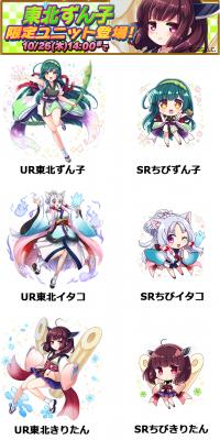 URが出現すると必ず「東北ずん子」(CV:佐藤聡美)、「東北イタコ」(CV:木戸衣吹)、「東北きりたん」(CV:茜屋日海夏)の東北ずん子コラボ限定ユニットがゲットできます!