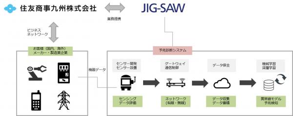 住友商事九州株式会社(本社:福岡県福岡市、取締役社長 前田 恒明、以下、住商九州)とJIG-SAW株式会社(本社:東京都千代田区、代表取締役 山川 真考、以下、JIG-SAW)は、インダストリアルインターネット分野において、AI(人工知能)を活用した製造業向け予兆診断サービスを、九州・沖縄地区中心に協業いたします。