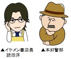 今回はおなじみの本好(もとよし)警部、怪盗ブックハントに加え、新キャラクターとしてイケメン書店員の読田洋(よみたひろし)が登場、キャンペーンを盛り上げます。