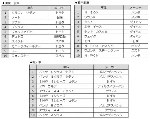 情報流通支援サービスの株式会社オークネット(本社:東京都港区/社長:藤崎清孝)は、2017年9月度のTVオートオークション(TVAA)における成約台数を集計し、タイプ別ランキングベスト10をまとめました。