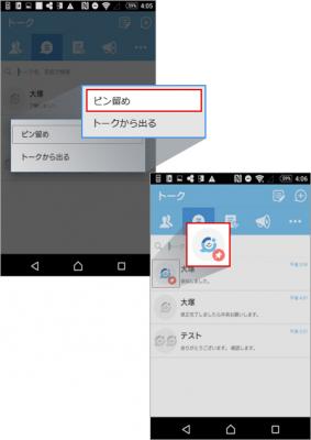 重要なトークルームを固定する「ピン留め」機能ピン留め機能を使うことで、新しく更新されたトークルームに埋もれることなく、常にトークルームを固定することができます。 これにより普段頻繁にやりとりするトークルームでの見落としの低減に貢献します。