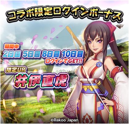 さらに、ログイン日数に応じて、コラボ限定UR「井伊直虎」が最大4体ゲットできる!
