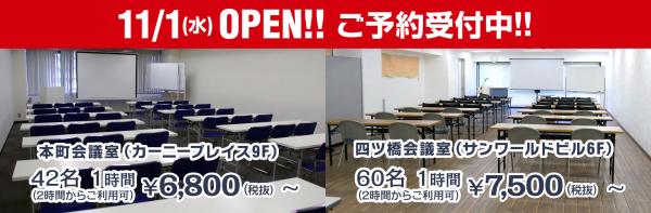 新たにオープンする2つの貸会議室はどちらも「四ツ橋駅」「本町駅」から徒歩0分の好立地に構えます。