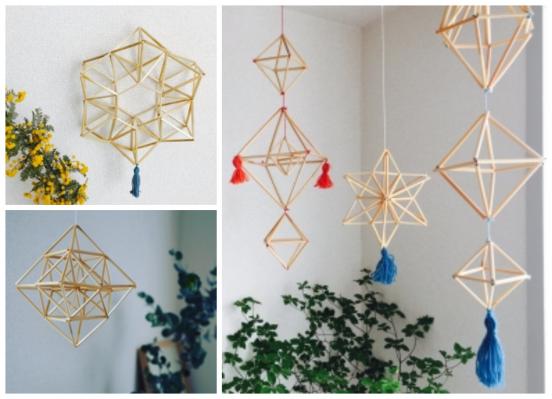 吊るして飾るヒンメリは、幾何学のデザインが美しく、「光のモビール」とも言われます。