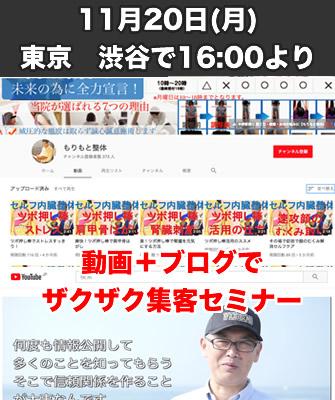 中小企業の動画集客を手掛ける株式会社ウェブデモ(本社:神奈川県茅ヶ崎市 代表取締役社長:川崎実知郎)は、中野駅で開業する森本整体(代表:森本貴士)と共同で整体師、治療院、個人事業主のための「ブログと動画を活用するネット集客」をテーマにしたセミナーを11月20日 東京渋谷で開催します。