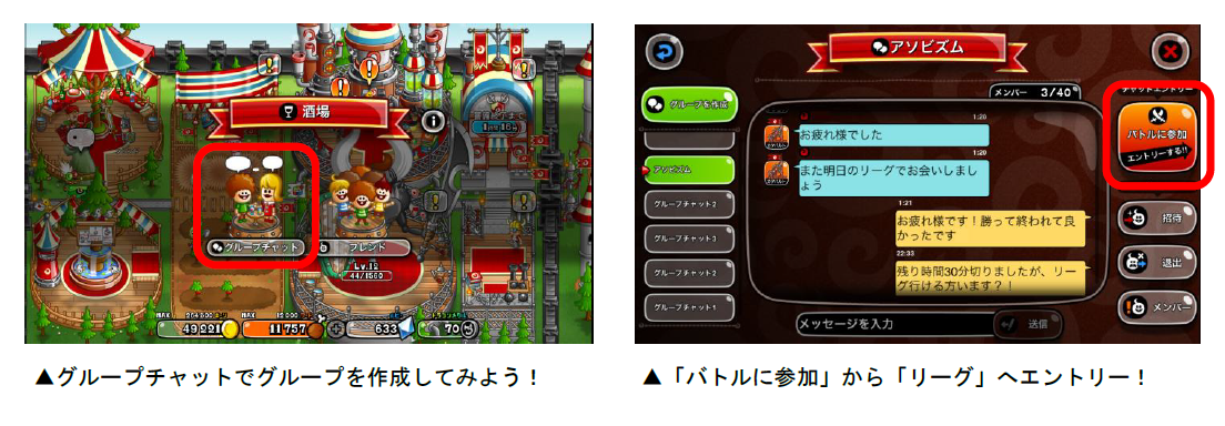 11月2日(木)から開催の「リーグ」では、グループチャットのメンバーでランキング上位を目指す「グルチャリーグ」を開催いたします。グループチャットから「リーグ」に参加し、仲間たちと一緒にランキング上位を目指しましょう!