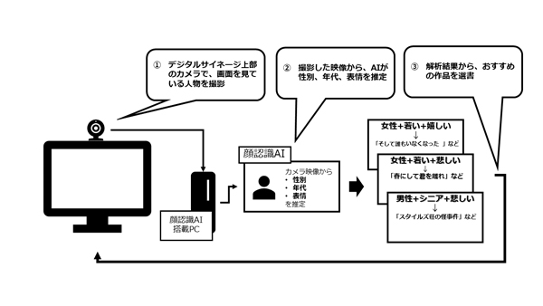 株式会社sMedio(本社:東京都中央区、代表取締役社長 岩本定則、東証マザーズ: 3913、以下sMedio)は、株式会社トーハン(本社:東京都新宿区、代表取締役社長 藤井武彦、以下トーハン)と共同で、顔認識AI技術を応用した書店店頭用デジタルサイネージ型システム「AI書店員」を開発し、本日11月6日より、ブックファースト新宿店において実証実験サービスを開始しました。