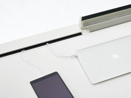 「US-1S」、「US-W」の追加に伴い、配線周りを一新。配線カバーのブラックの樹脂ラインが配線周りを引き締め、品質・美観の向上とともに段差を設けることで手掛かりになるなど使い勝手も向上。配線カバーは開いた状態をキープし、任意の位置からケーブルの取り出しが可能です。