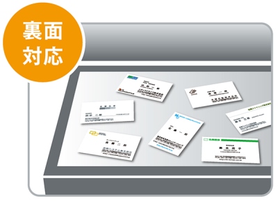 一度に両面がスキャンできるドキュメントスキャナはもちろん、フラットベッドスキャナや複合機による名刺の両面取り込みに対応しました。