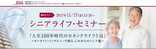 シニア世代分析のリーディング・カンパニー、株式会社ジャパン・マーケティング・エージェンシー(本社:東京都渋谷区)は、昨「シニアライフセミナー」を来る11/17(金)に開催致します。