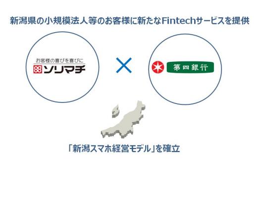 また、新潟県長岡市の会計事務所を母体とするソリマチグループと第四銀行は共に新潟県内に顧客を持つことで、相互の顧客に対して、ネットバンキングやスマホ向けアプリケーション利用の共催セミナーの実施、フィンテック領域における協業の検討を予定しております。