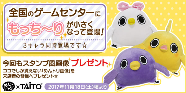 大好評頂いております、「めんトリ」プライズ第17弾は、3キャラ同時登場!!ついつい集めたくなってしまうサイズ感のアイテムに仕上がりました◎ 手のひらサイズで登場する今回のアイテムは、あの人気素材のもっち~りタイプとなっており、触り続けてしまいそうな気がします…♪ 是非早急の捕獲をよろしくお願いいたします!!