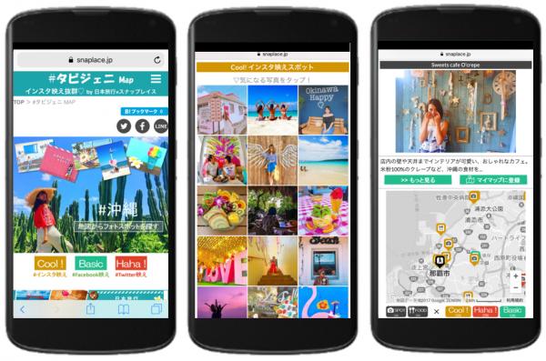 SNAPLACE(スナップレイス)ではインスタグラム等のSNS投稿を独自のシステムで分析し、SNS映え度合いが高いと想定される国内外の約6,000スポットを紹介する、日本最大級のSNS映え観光情報サイトSnaplace( https://snaplace.jp/ )を運営しています。そこで集まった大量のSNS映え分析データを活用し、SNSでフォロワーが増えやすい投稿のできる「沖縄のSNS映えフォトスポット」を合計100スポット以上あぶりだし、2017年12月7日にタビジェニMAP沖縄としてリリースしました。