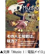 今回MVP ブランドでは、実在する「AI ロボットMusio」を小説化した文庫『MusioI:電脳メイロ』と、「Musio」がデザインされた「ミュージオフセン」、「ミュージオマスキングテープ」3 種をオリジナル販売台で販売します。文庫は「Musio」をモチーフにした作品で、主人公の中学生「メイロ」の元に現れた謎の白いロボット・ミュージオと一緒に次々と起きる機械の暴走を食い止めながら、人類と人工知能の未来を切り開くファンタジー小説です。全3 部作の発売を予定し、第2 作目となる『MusioII:電脳天使』は2018 年春までに発売の予定です。