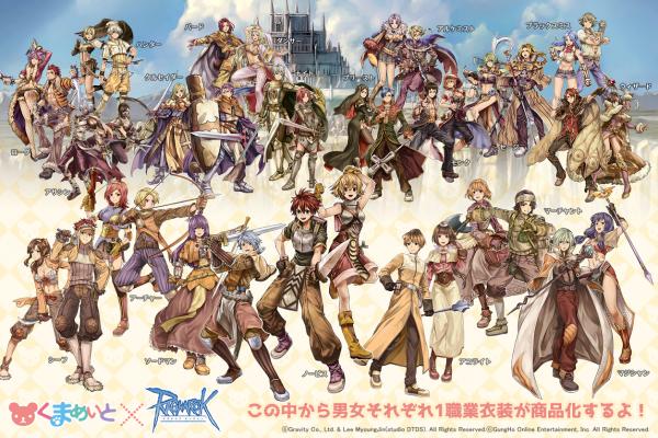 ROの1次・2次職業のうち男女それぞれ1種を「くまめいと」のミニチュア衣装に商品化いたします。