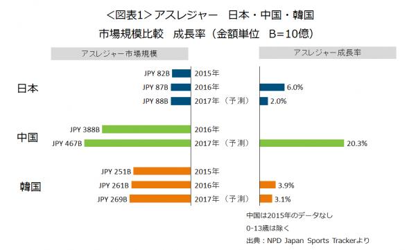 アスレジャー市場規模870億円、日本は韓国の1/3 中国の1/4